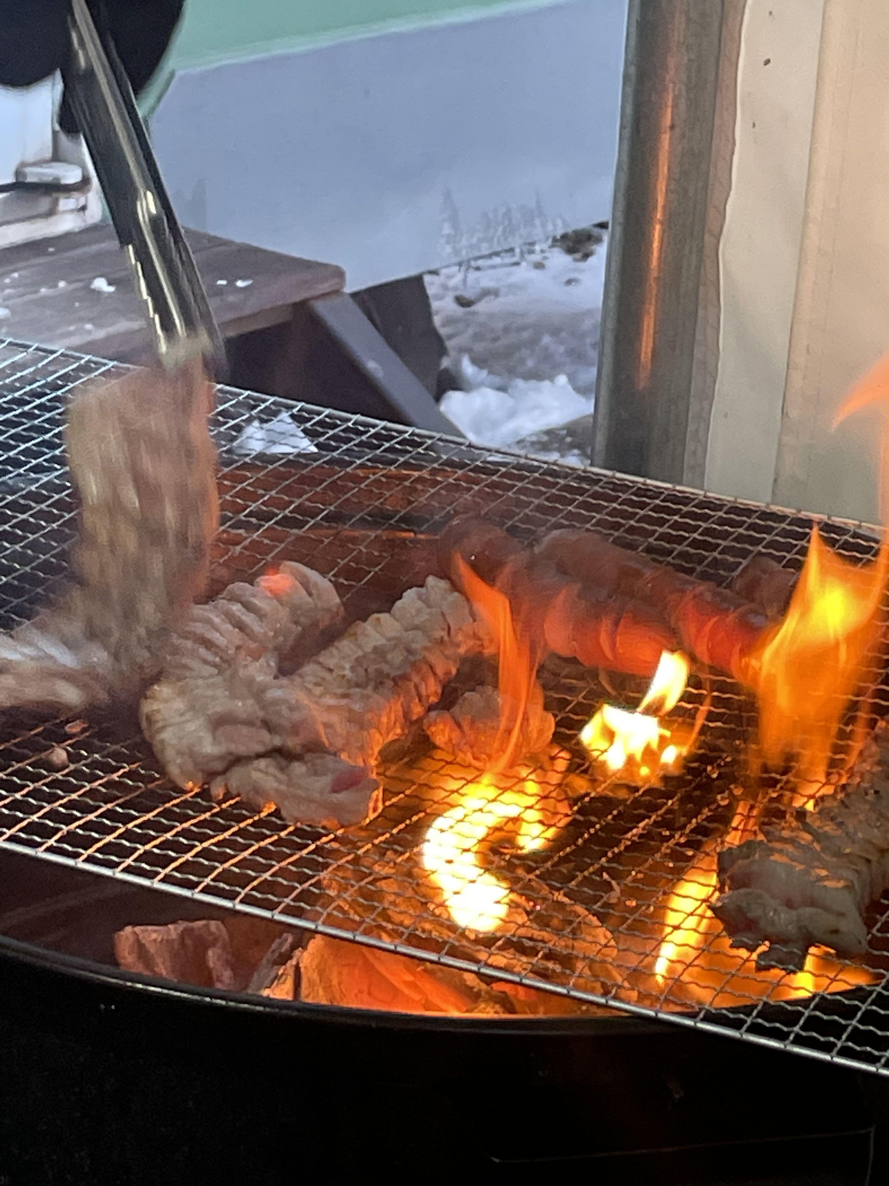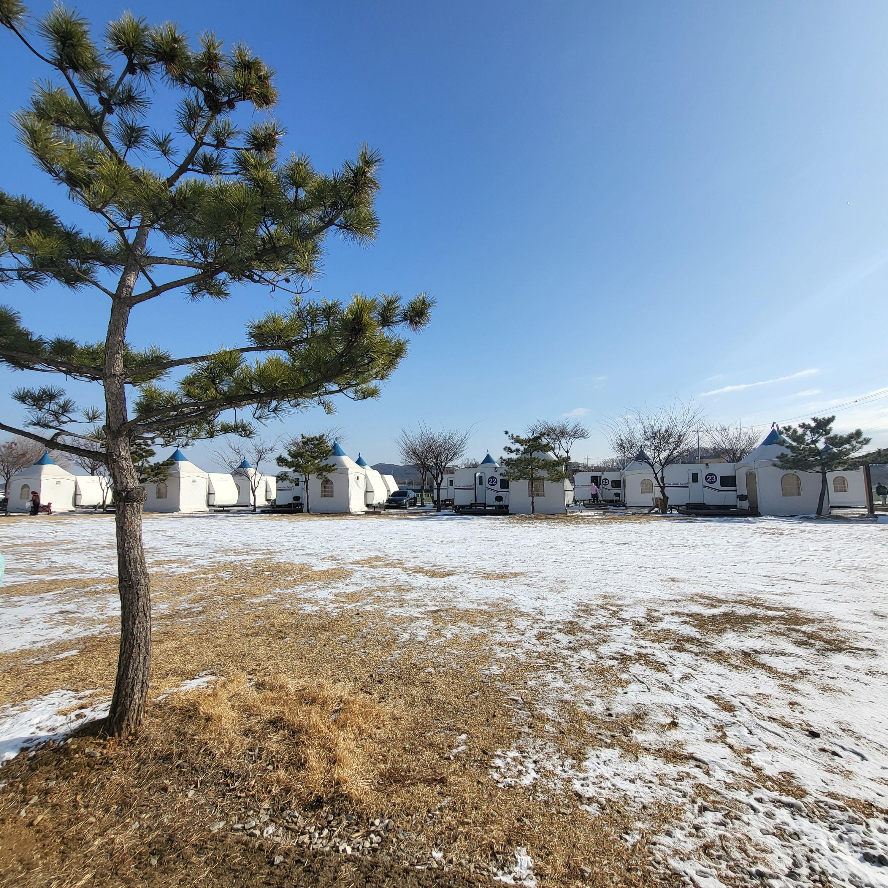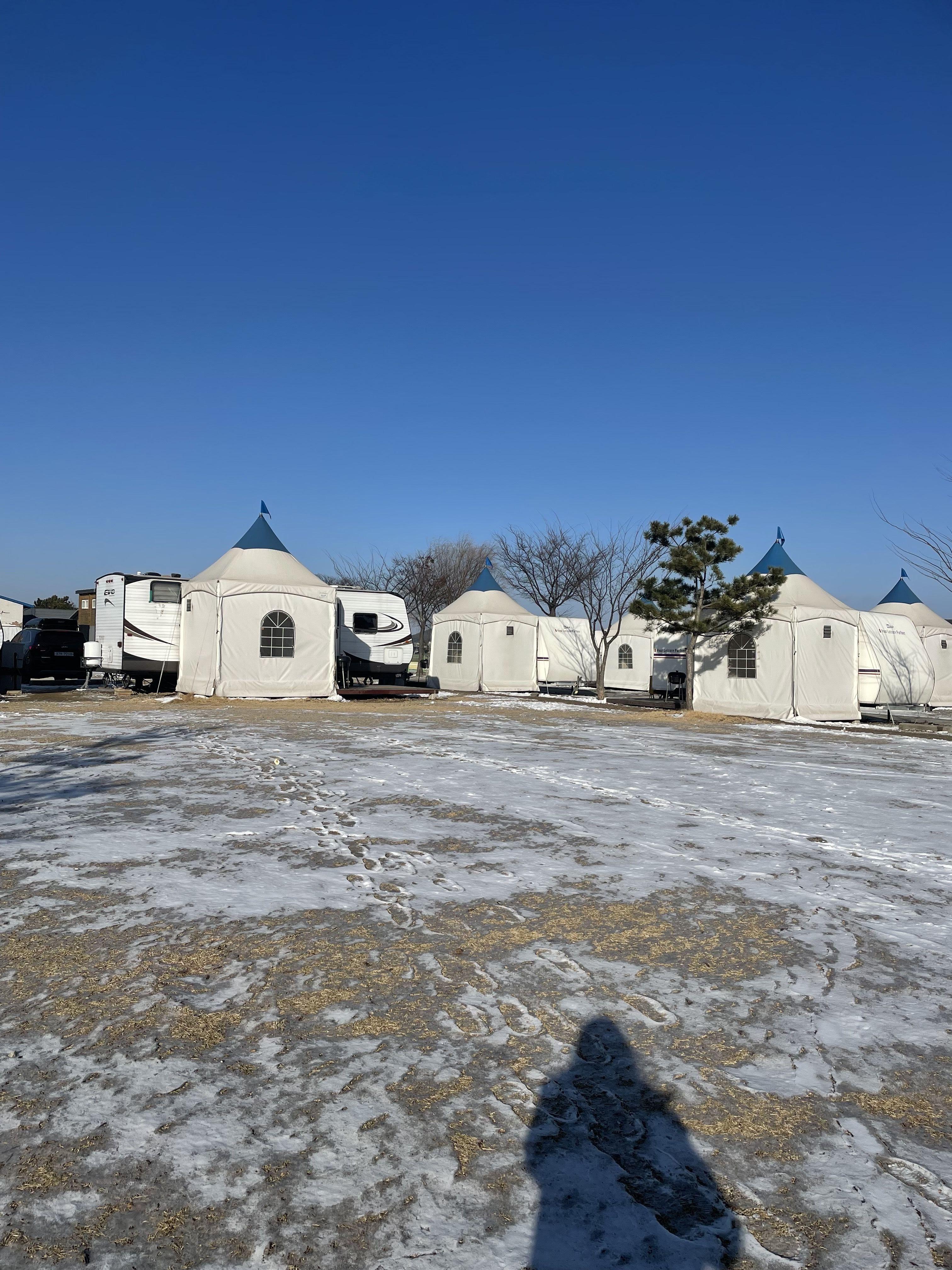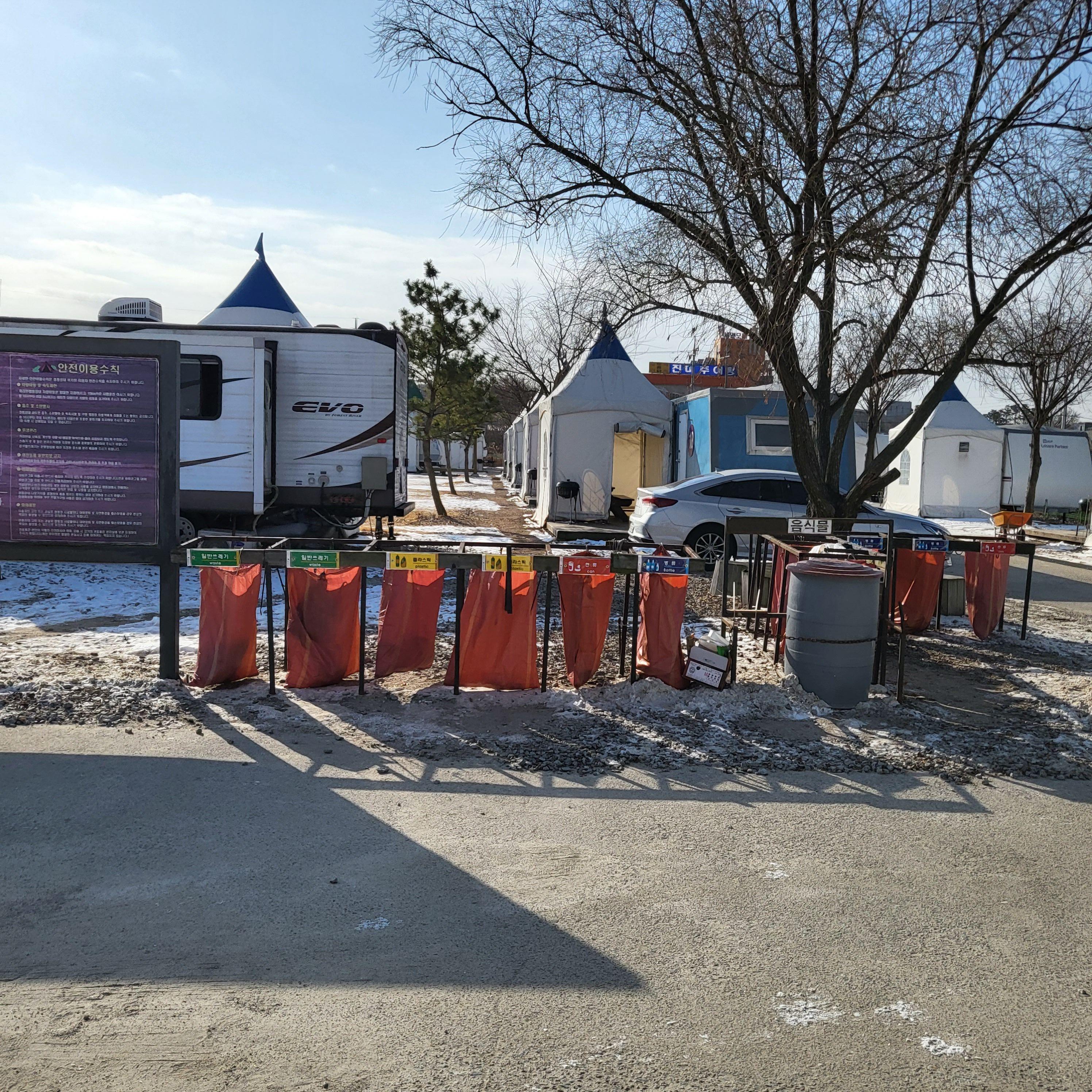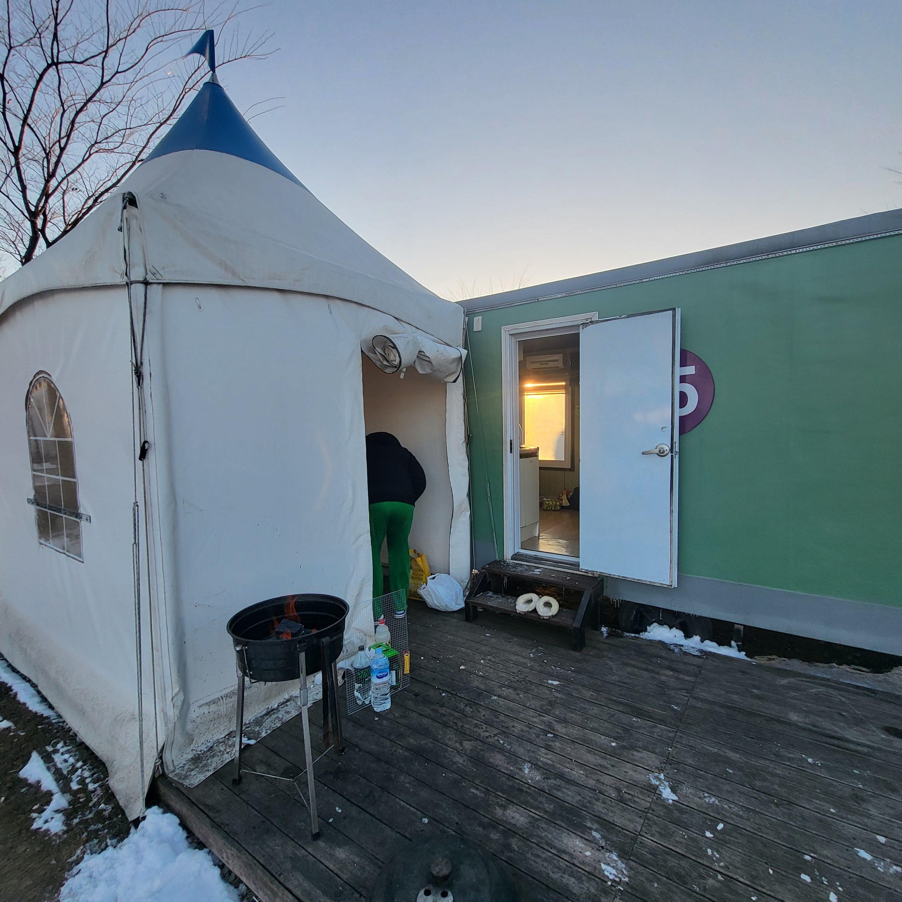 숯불은 카라반마다 옆에 천막으로 개별캠핑 할 수 있도록 되어있어서 좋았습니다.