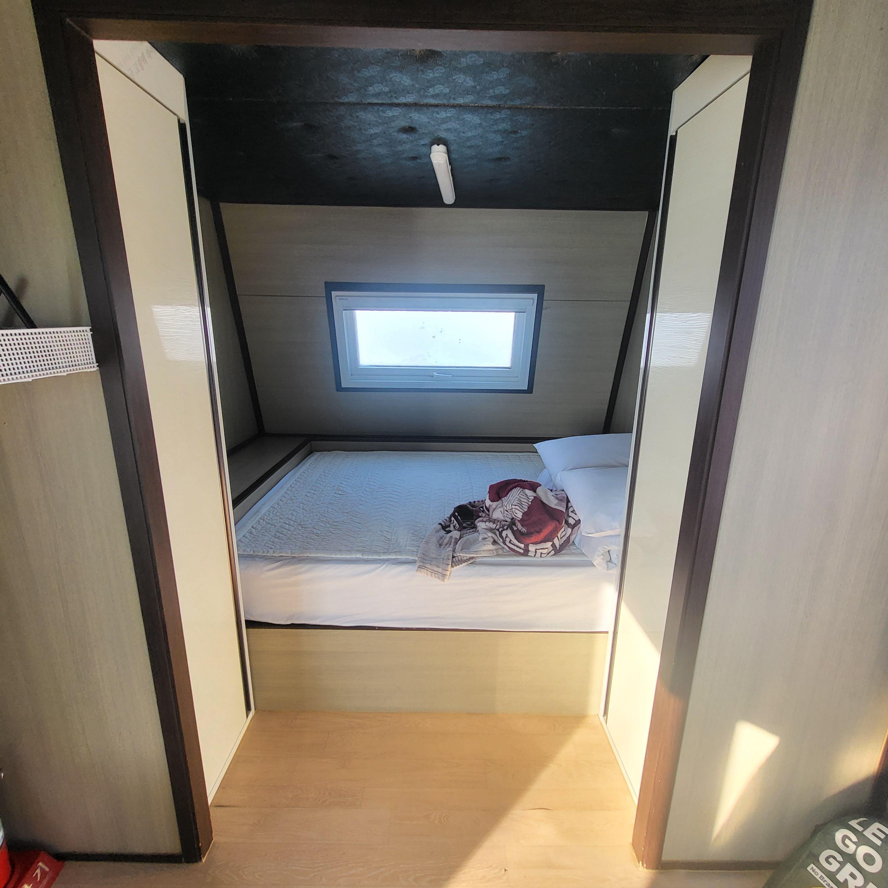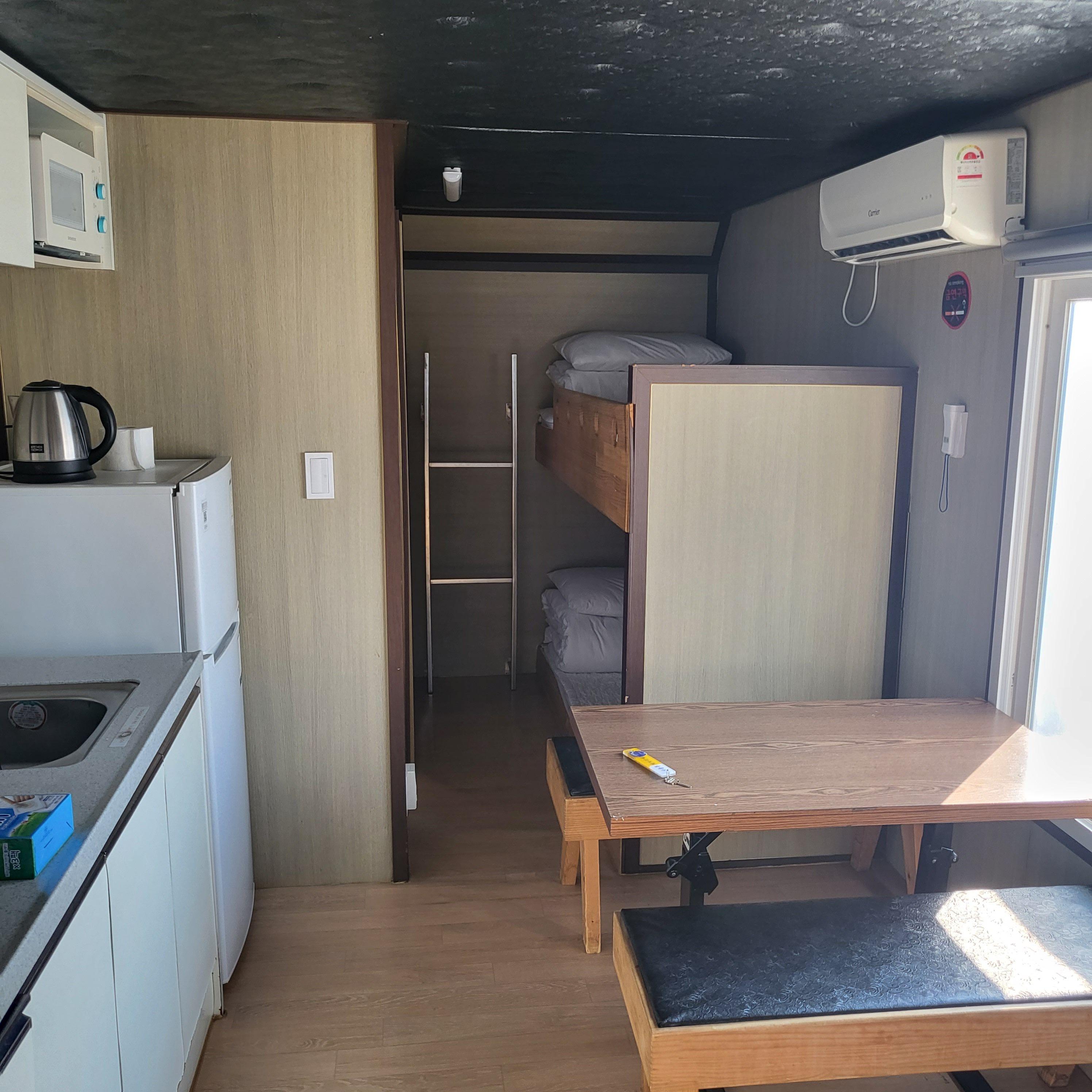 카라반 내부입니다. 오른편에 넓은 사이즈 침대가 있구요