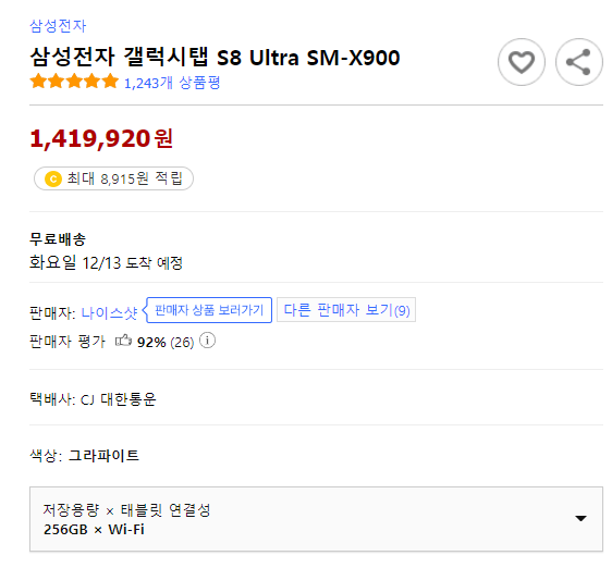 저는 갤탭 S8 울트라를 가장 저렴했을 때 싸게 샀는데
