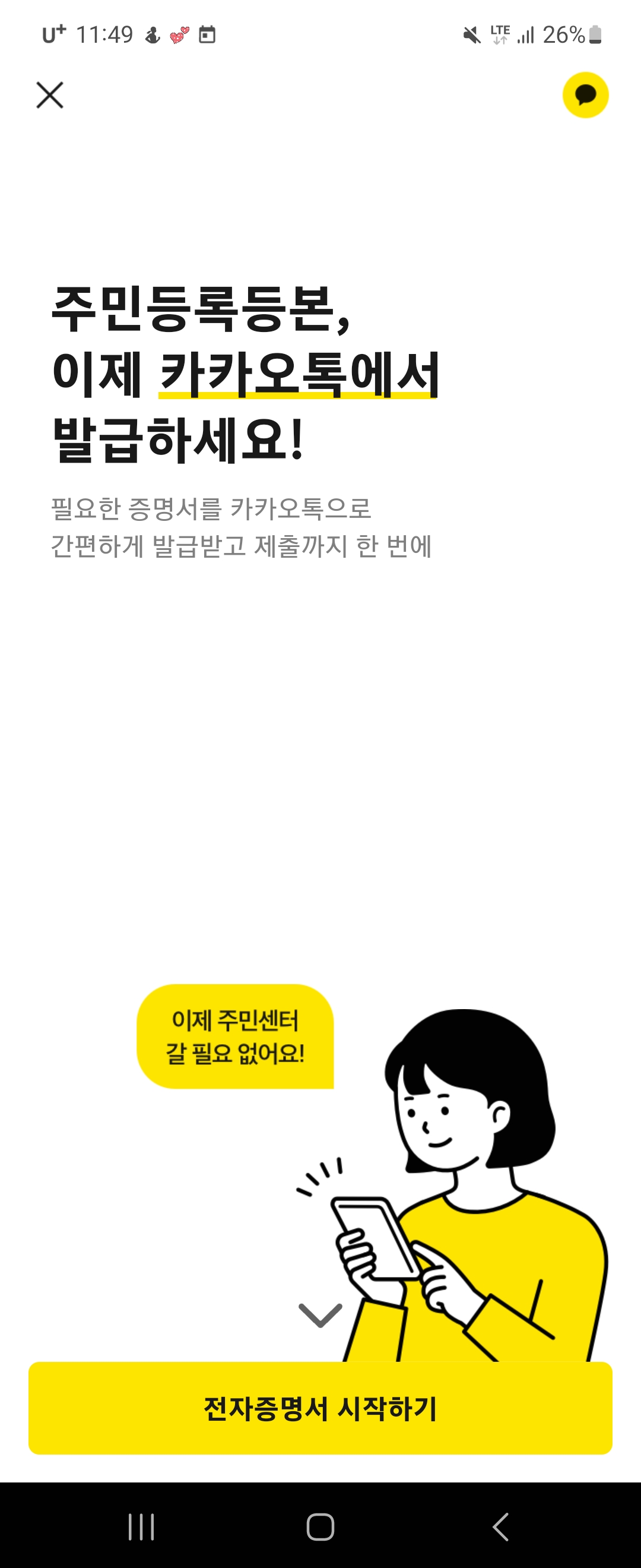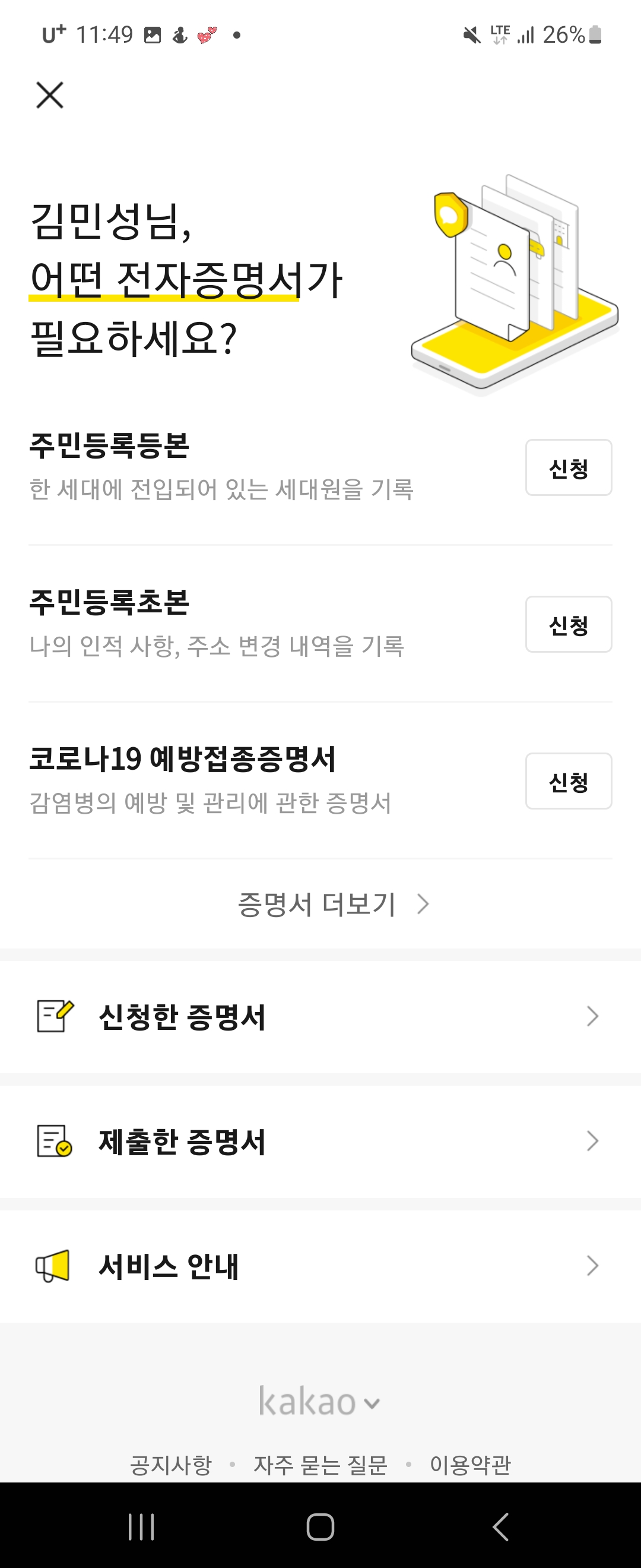 단, 카카오톡 전자증명서 하나만 인증되어있으면 신청이 가능합니다