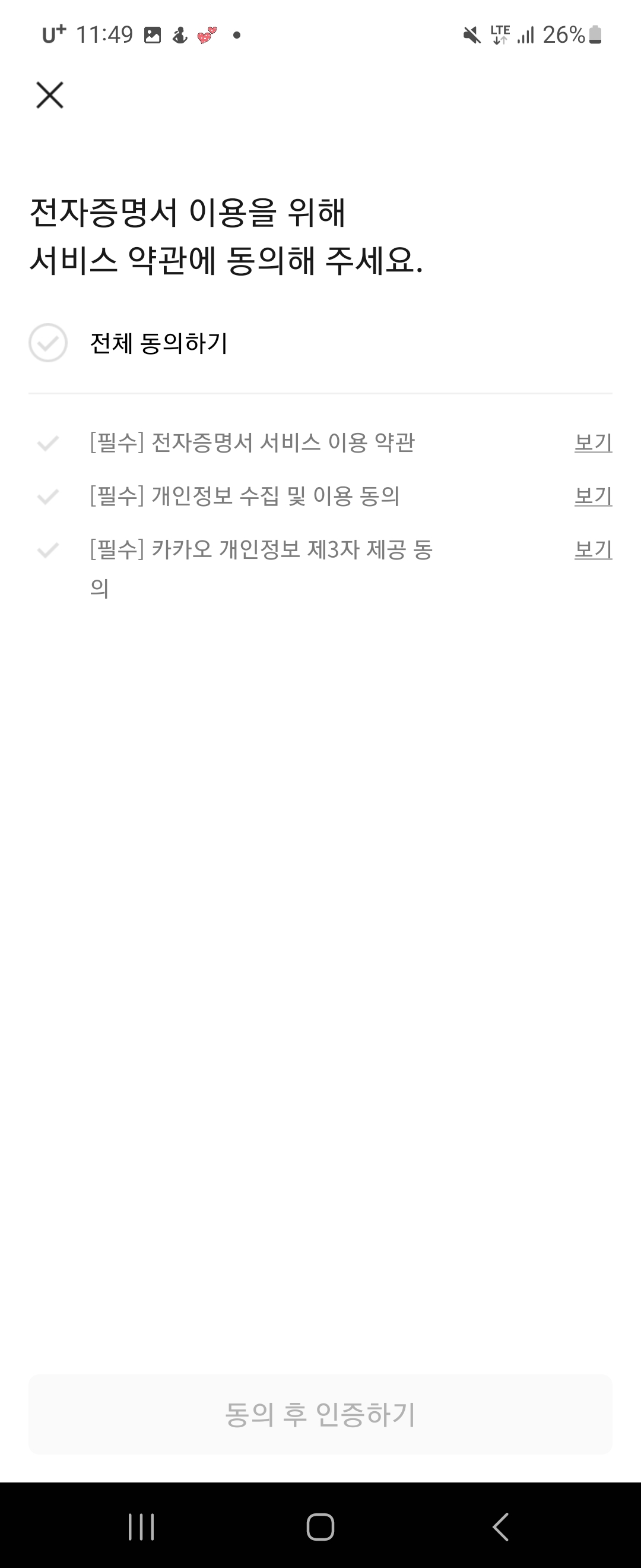 제일 먼저 카카오 인증서가 준비되셔야합니다.