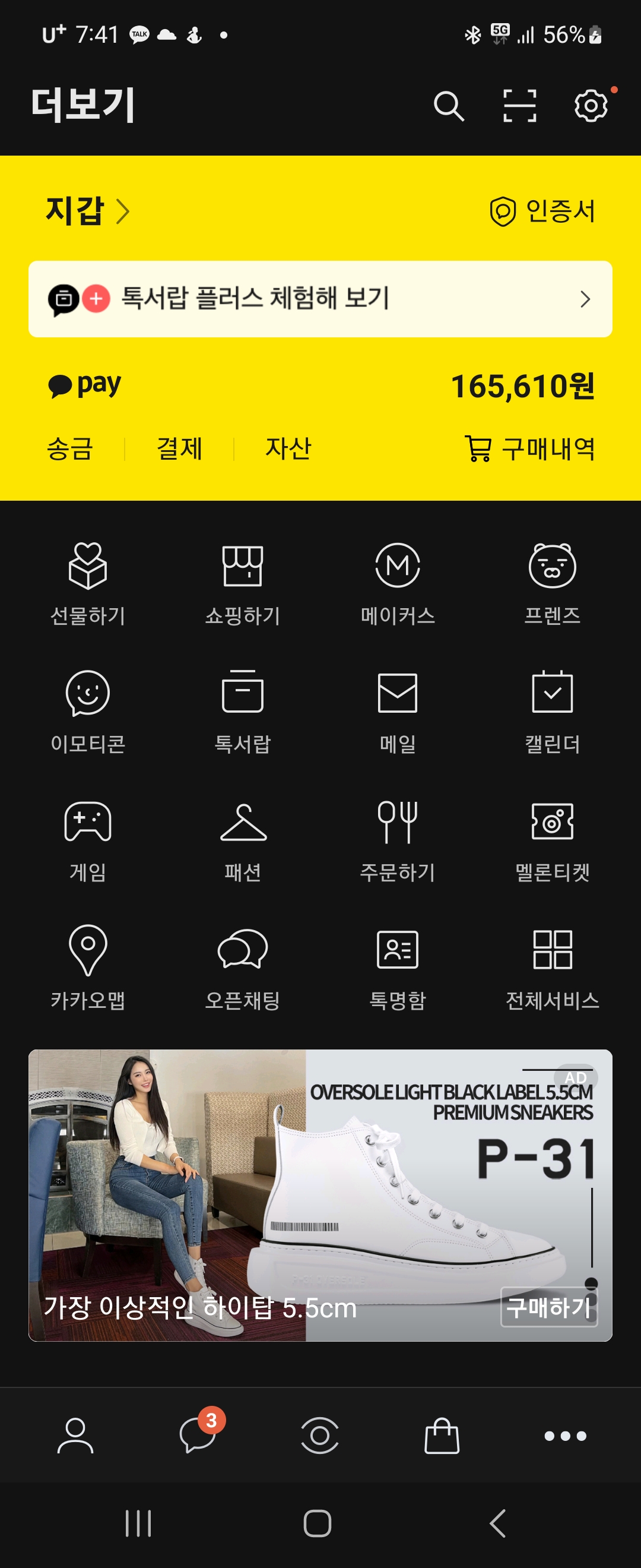 카카오톡을 열고 '지갑' 부분을 클릭하시면 여러가지 메뉴가 나옵니다.