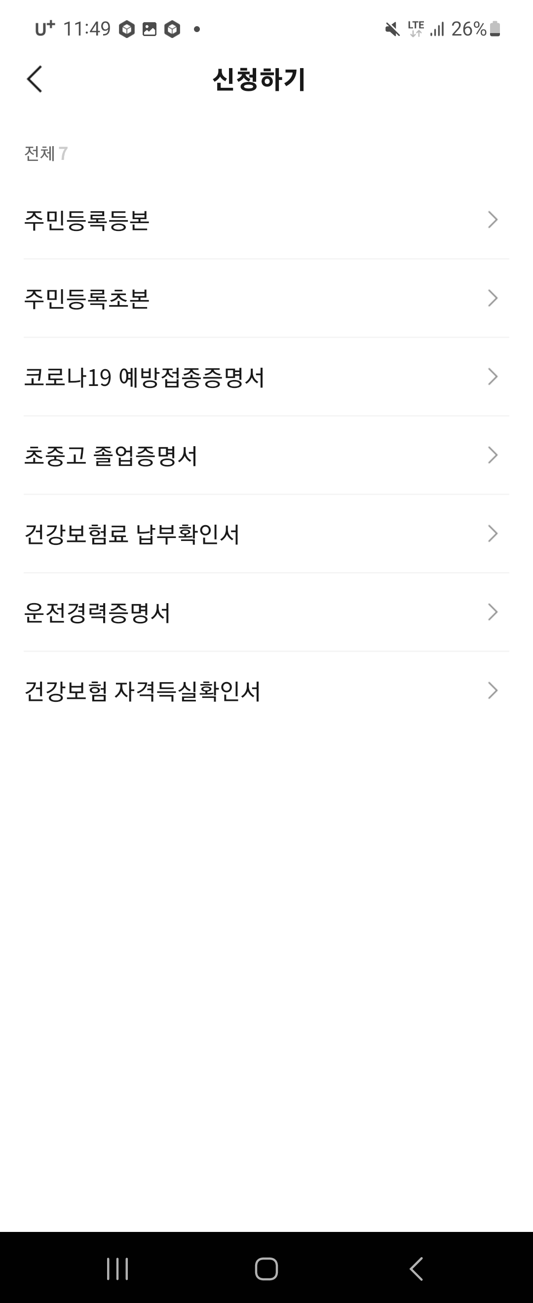 이 모든 서류들이 PC를 켜지 않아도 핸드폰으로 온라인 발급이 됩니다.