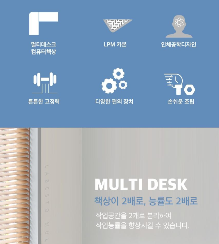 라베스토 멀티데스크 컴퓨터책상은 상판이 LPM카본으로 되어있어서 튼튼하고 가성비가 좋더라구요.