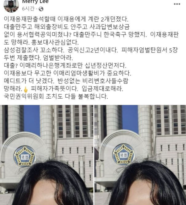 서울중앙지법에서 이재용회장에게 계란을 던졌지만 맞지는 않았습니다. 바로 법원 방호원들이 이매리배우를 제지하고 고발검토중이라고 합니다.