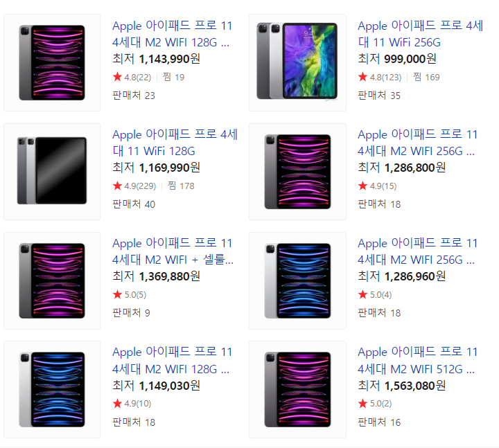 현재 네이버스마트스토어에서 판매하는 아이패드 프로11 4세대 가격입니다.