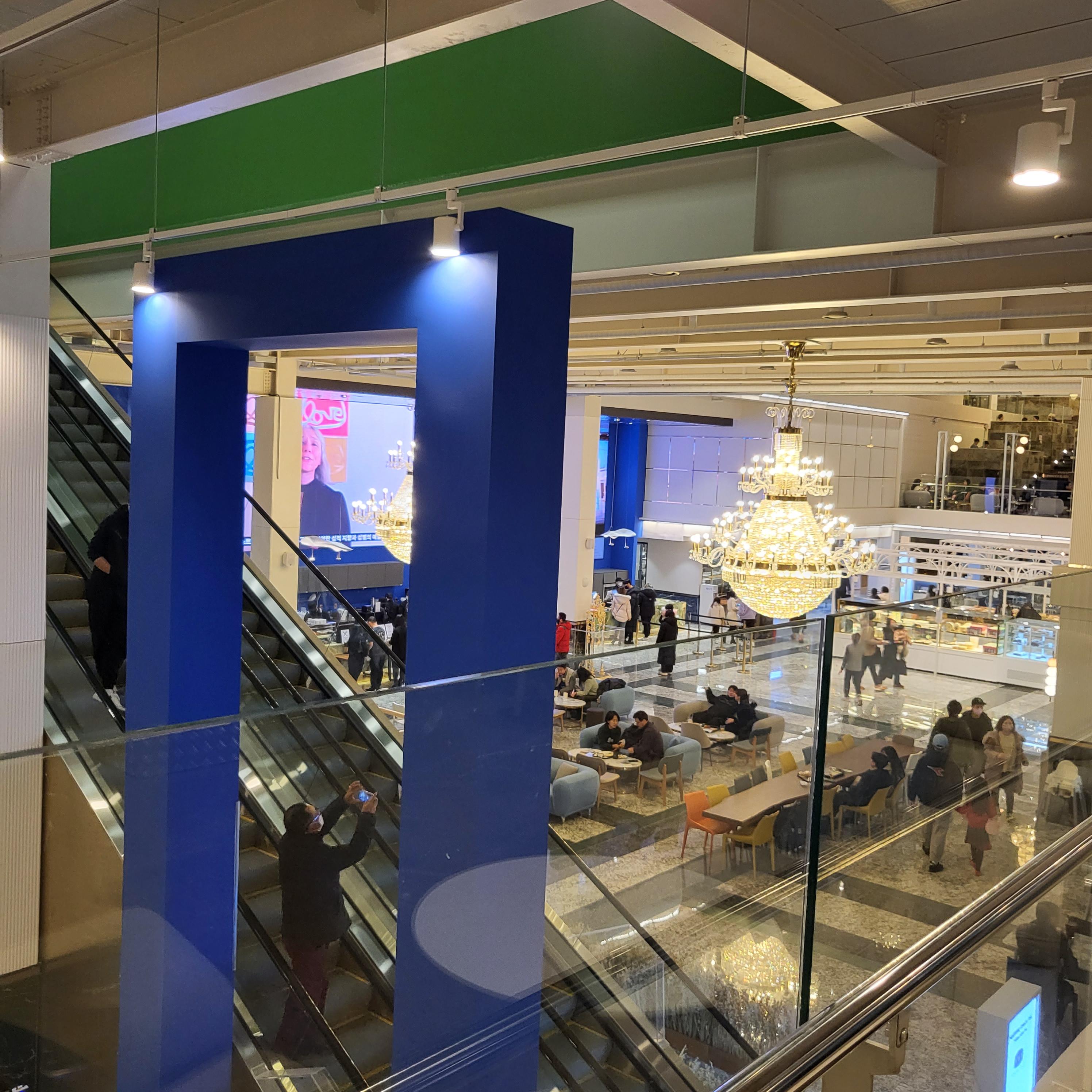 에스컬레이터 엘레베이터가 곳곳에 있는데, 저희는 구경하면서 올라가려고 에스컬레이터를 탔습니다!