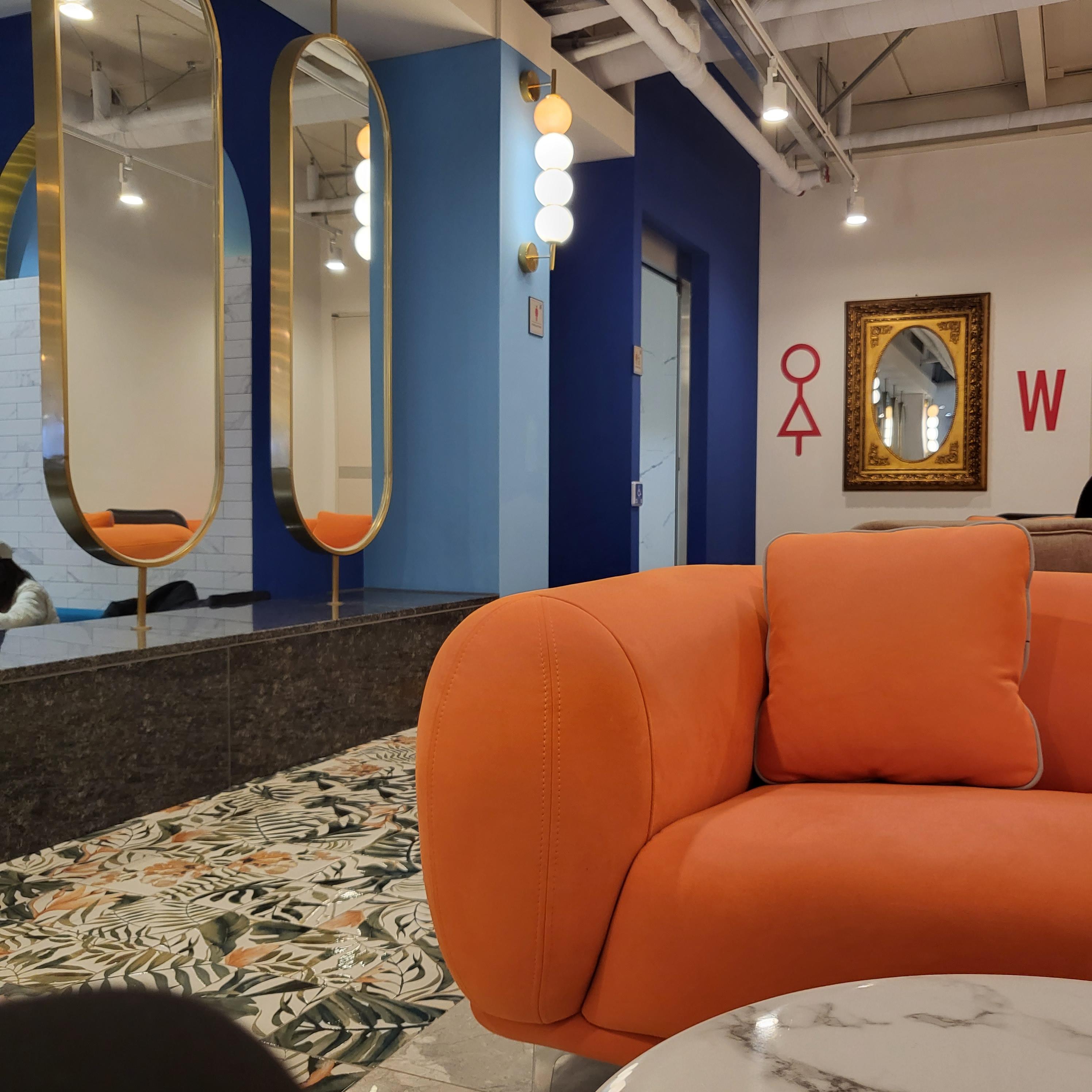 1층에 보이는 테이블과 화장실 입구부터 남다른 카페네요