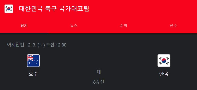 FIFA랭킹 23위인 한국과 8강전에서 맞붙게 될 호주는 랭킹 25위로 팽팽한 라이벌 구도라고 볼 수 있겠습니다.